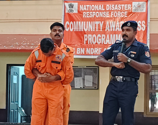 The NDRF team, led by Commander Mr. Sandeep Kumar, conducted an awareness session and live demonstrations on flood rescue operations, fire safety drills, first aid, and CPR training. Students actively participated, gaining hands-on experience and practical knowledge in disaster management.