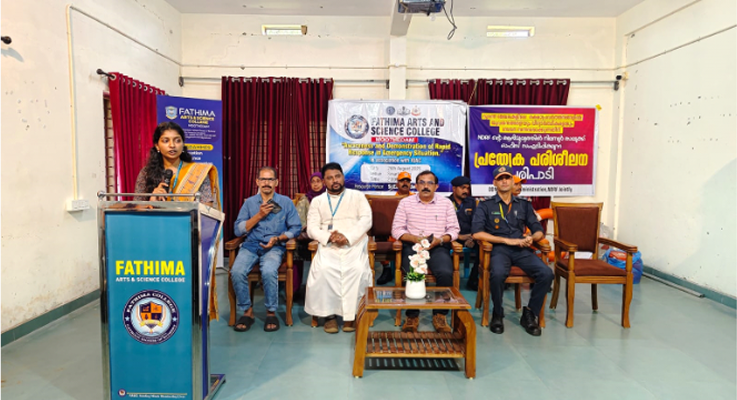 Fathima Arts & Science College, Moothedam, in association with IQAC, inaugurated its Rapid Response Cell (RRC) on 26th August 2025 in collaboration with the National Disaster Response Force (NDRF) and the Government of Kerala. The initiative aims to strengthen disaster preparedness on campus and empower students and staff with essential response skills.